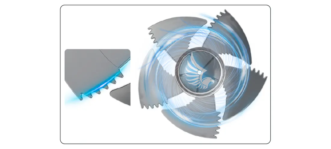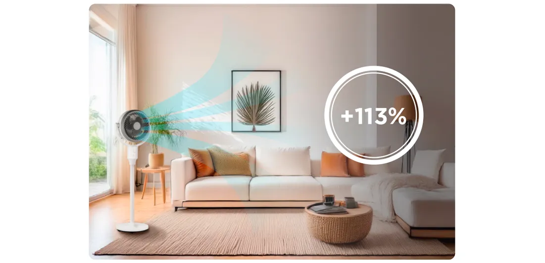 Genera un poderoso flujo de aire de hasta 277m/min, un 113%